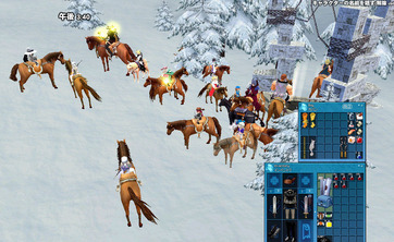そこ、一番嫌だし!(マントンが開いてる時間帯なら、まだ救われるんだけどね) それより、タヌキのペット呼び出し状態で出てこないし(爆) 必死こいて出てきたペットを引っ込めて、新しくお仲間に入れたイーグルに乗って無理矢理現地へ(^^; 途中、数羽のサンダーバードを抜かして、更に眼下のサラブレを抜かしました。 イーグルはえぇ!!