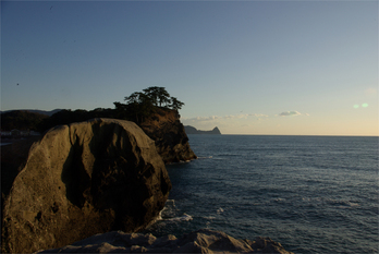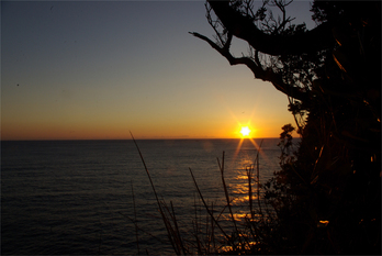足を怪我していたこともあり、無理は禁物? と思っていたんですが、家族の勧めもあっててろてろと堂ヶ島まで山を徒歩で降り、遊歩道を必死でのぼってとったのがこれ(^^; 夕日って前から一度写してみたかったんだけれど、チャンスがなかったのよね〜。 ベタな太陽を中心にした入り日を撮りたかったのに、何故かあたしが撮ったらこうなりました・・・。 個人的には気に入ってるんだけどね(゚-゚;) 左側があきすぎだって。 だよなー(^^;