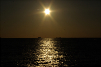 遠くに見えるのは船なんかしら。 これは日没より45分ぐらい前の写真。 実は遊歩道でない所にとことこ入り込んで、運動神経皆無なのに岩をよじよじのぼって写しました(゚-゚;) こういうことって20代の頃はよくやってたんだけれど、さすがに34にもなるとキツいね! 墜落してタヌキのミンチになるところでした。 実際、あんなところで一人でちょこちょこしてると、自殺志願者に間違われそうなんで、ここで日没まではるのは避けたわけですが(爆)