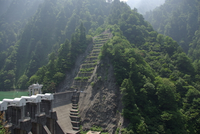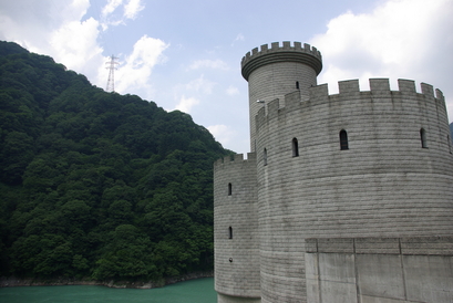 ちょこちょこ写ってる建物は、発電所だよ〜。 黒部峡谷に行くと、ダムの楽しさに目覚めてしまう(^^; ちなみに、石原裕次郎の「黒部の太陽」のダムはもっともっと先だ!(タヌキはいけなかった(・・; ) 詳細は、黒部ダムで検索して調べてみてね〜。