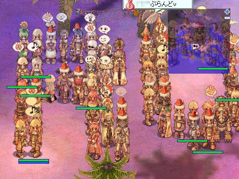 キャラ作るところからはじめたのでかなり焦ったのですが、場内の集合時間ギリギリに間に合って、大聖堂に移動。 ここでPTを組んで伊豆に移動。(PTください、なんていうのも最初で最後(笑)) 伊豆では、なんか一人で枝テロを繰り返していた廃プリさんがいて、タヌキも見事にリヒに飛ばされたりもしましたが、気合でメタリンに攻撃あてて、死に戻り〜。 >ものの見事に一人だけリヒに飛ばされた(爆)