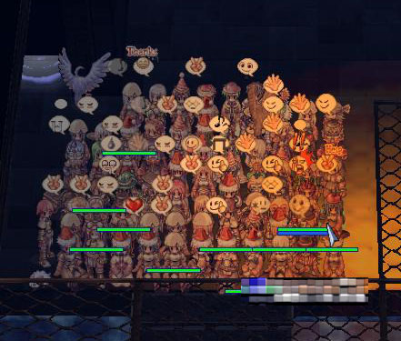 最後はみんなで死体で!(爆) タヌキはノビだったのであっさりと死ねましたが、さすがにカオスが本鯖の人は死ねなかった人も多数いた模様。 しかし、見事に死屍累々(^^;